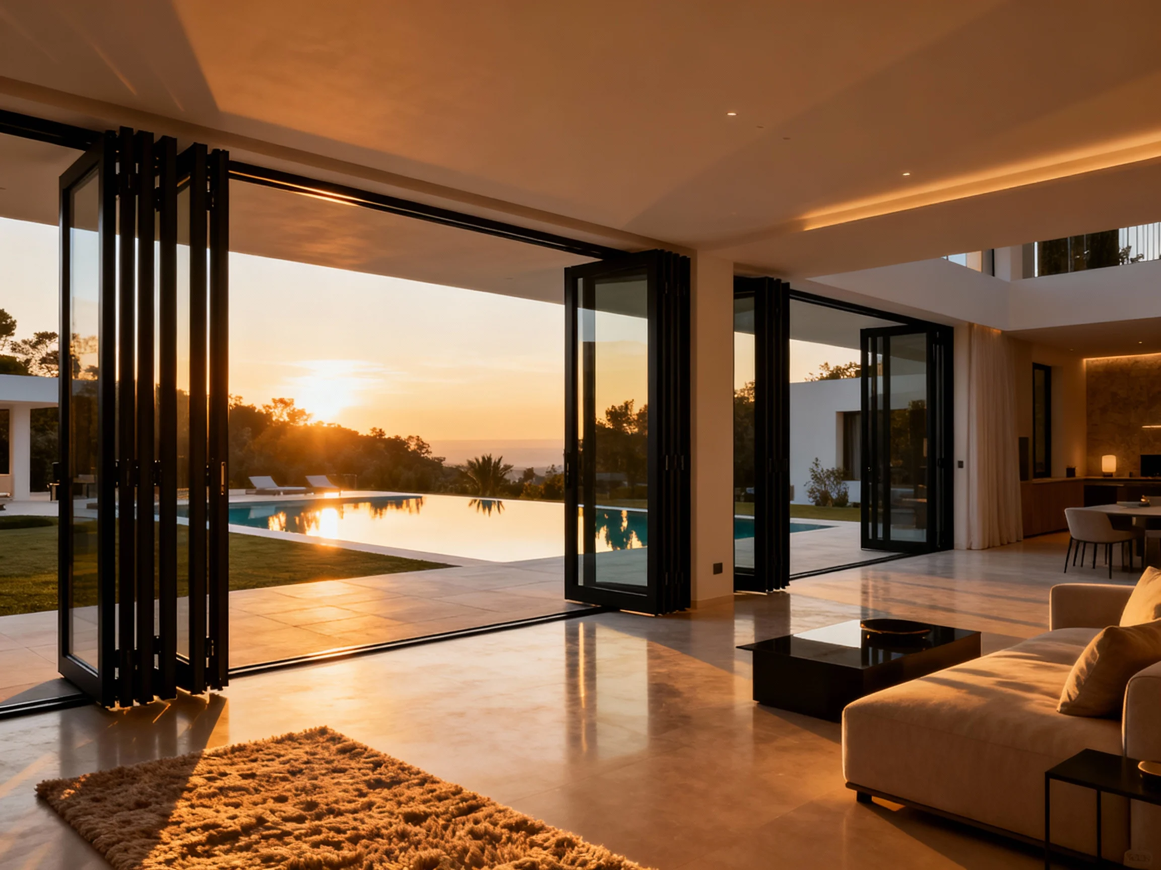 They are ideal for opening up living rooms to gardens or terraces, connecting kitchens to outdoor dining areas, dividing large interior rooms flexibly, and creating impressive entrances for commercial spaces.